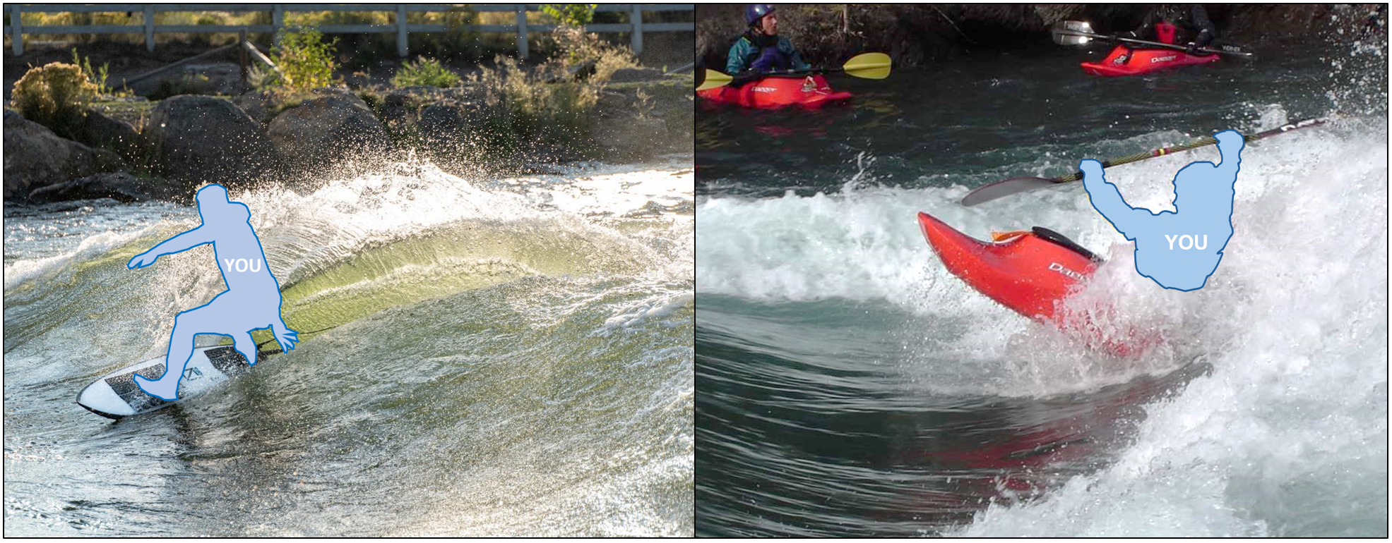 You shredding a perfect wave and you crushing a tall kayak wave with a good pile.